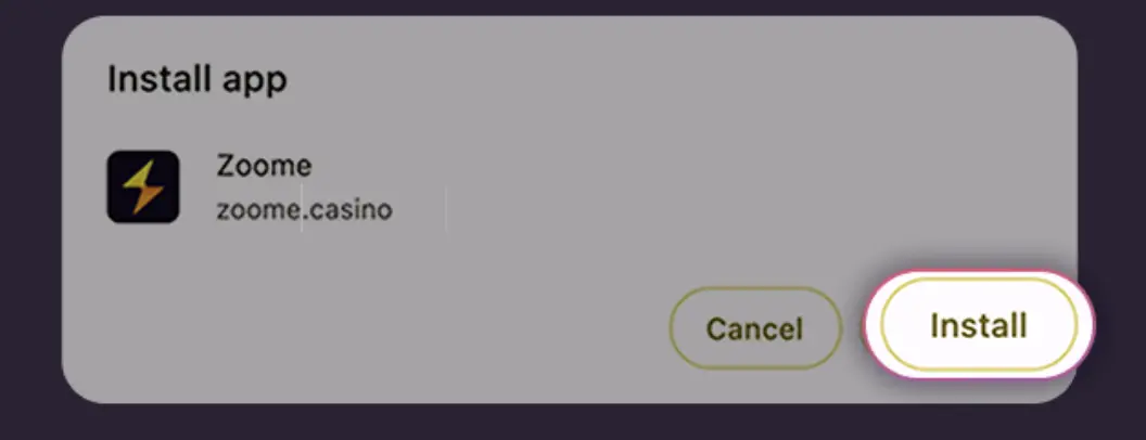 Allow all the necessary permissions for the thumbnail of our Casino Zoome app to be added to your home screen.