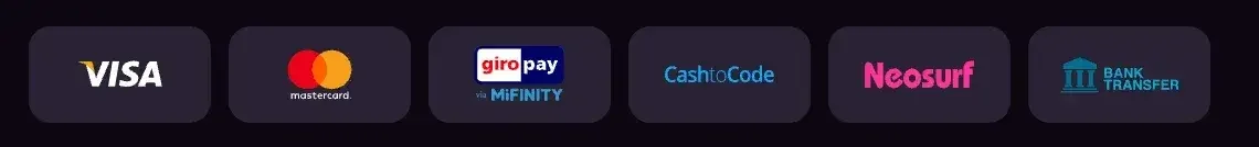 For all your deposits and withdrawals, there are both fiat and crypto payment options to choose from. Some of the available ones include VISA, MasterCard, Giropay via MiFinity, CashToCode, Bitcoin, Litecoin, Tether, Bitcoin Cash, Bank Transfer and many more. It doesn’t matter if you’re a high roller or a moderate gambler, all our payment methods can accommodate your structure.