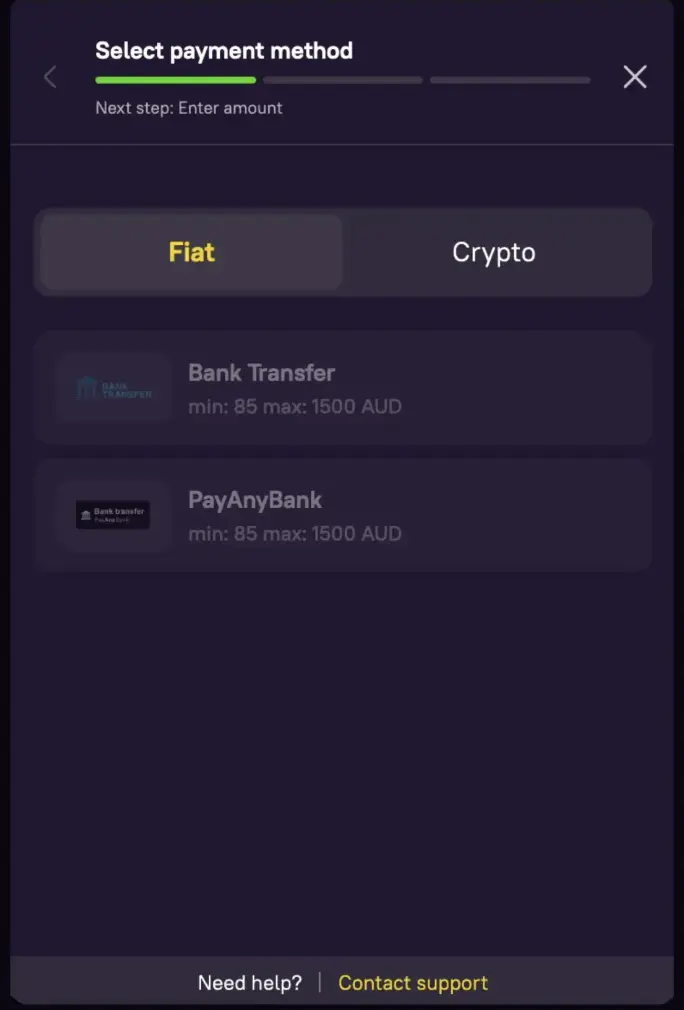 - For crypto deposits, copy the deposit address and head to your crypto wallet to send the funds into the copied address.